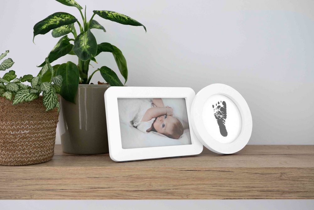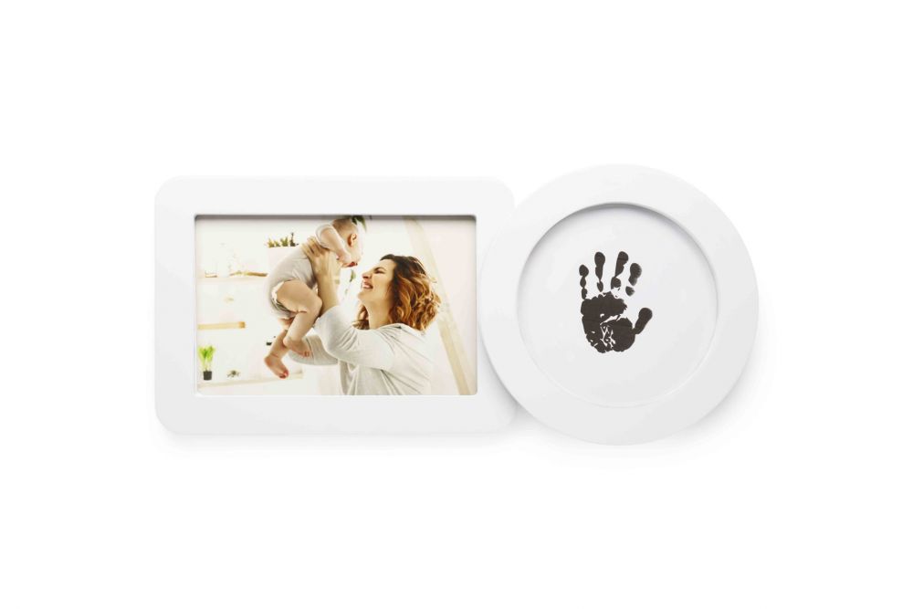 Kehyksen toisella puolella on arvokas valokuva, kun taas pyöreä puoli on erityisesti suunniteltu vauvan kättä tai jalanjälkeä varten jättämättä iholle jälkeäkään mustetta. Musteettoman alustan ansiosta voit luoda selkeän tulosteen, turvallisesti ja sotkuttomasti, täydellinen vastasyntyneille. Kaunis ja henkilökohtainen vauvalahja, joka yhdistää rakkauden ja muiston yhteen eleganttiin muotoiluun. Konkreettinen muisto pienimmistäkin käsistä tai jaloista, huolellisesti säilytettynä. • Sisältää musteettoman alustan – sotkuton ja turvallinen vauvoille • Tilaa yhdelle valokuvalle ja yhdelle kädelle tai jalanjäljelle • Tyylikäs ja moderni valkoinen muotoilu • Täydellinen vauvakutsulahjaksi tai omille vauvamuistoillesi • Mitat: 30 x 13 x 3 cm